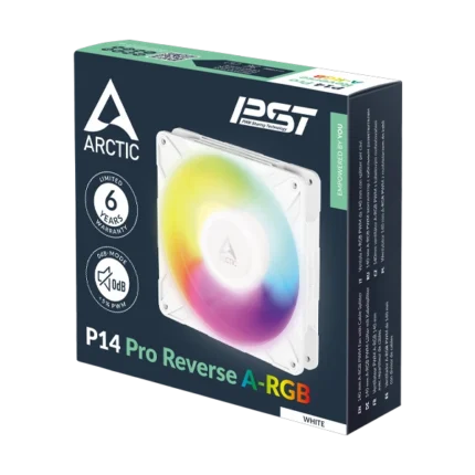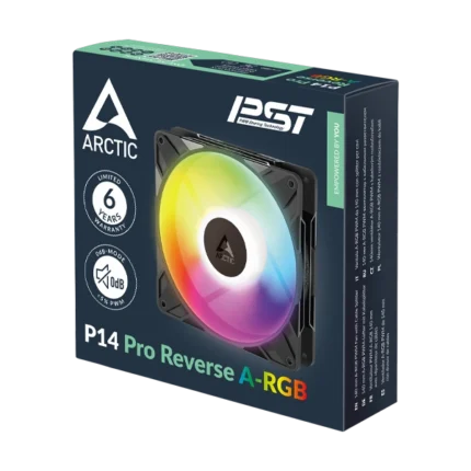 The ARCTIC P14 Pro Reverse A‑RGB White 140mm Case Fan is a high-performance premium cooling solution designed for modern PC builds, featuring reverse airflow for clean RGB aesthetics, powerful static pressure for radiators, and ultra-efficient PWM control. With vibrant addressable RGB lighting, whisper-quiet fluid dynamic bearing, and optimized blade design, it delivers exceptional airflow and cooling performance while enhancing the visual appeal of showcase gaming rigs.
