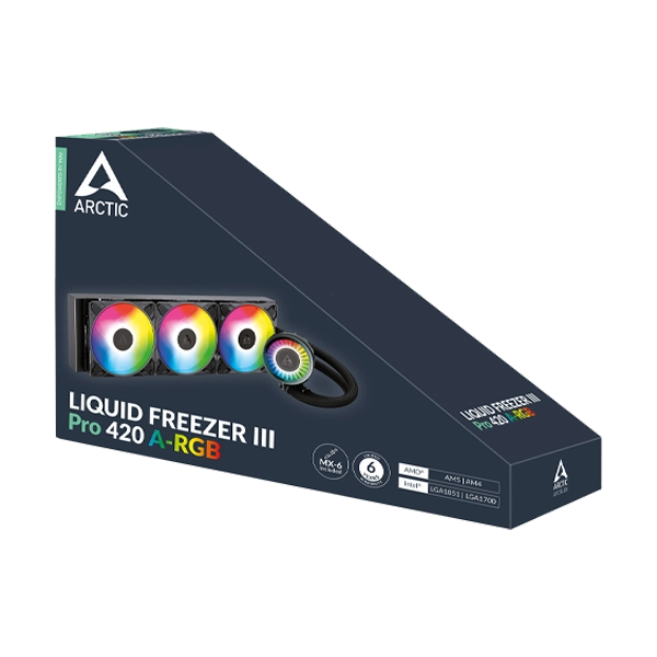 The Arctic Liquid Freezer III Pro 420 ARGB Black CPU Liquid Cooler. Shop now for high-performance cooling with vibrant ARGB lighting, compatible with Intel & AMD, and enjoy free shipping!